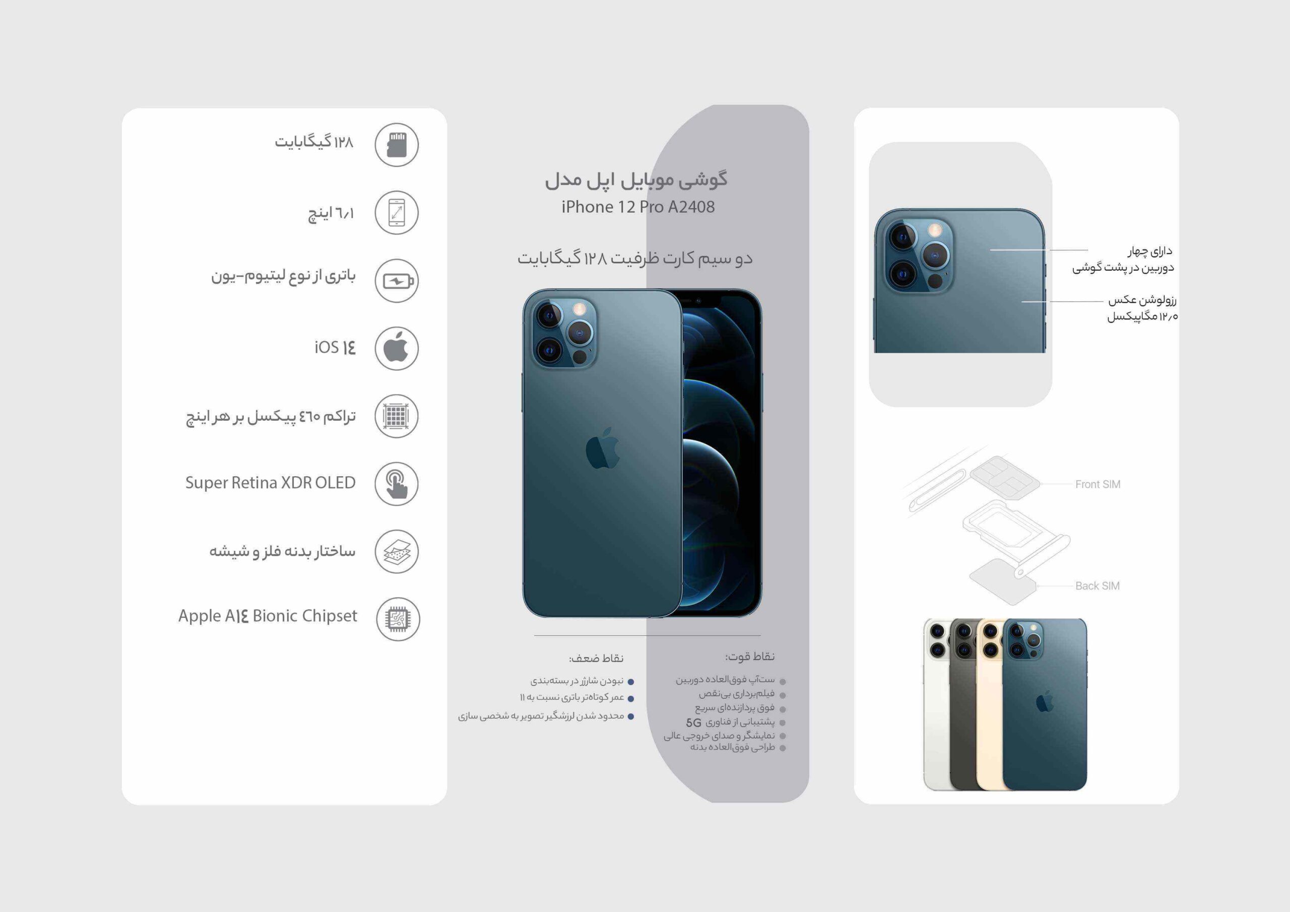 Apple iPhone 12 Pro A2408 Dual SIM 256GB And 6GB RAM Mobile Phone